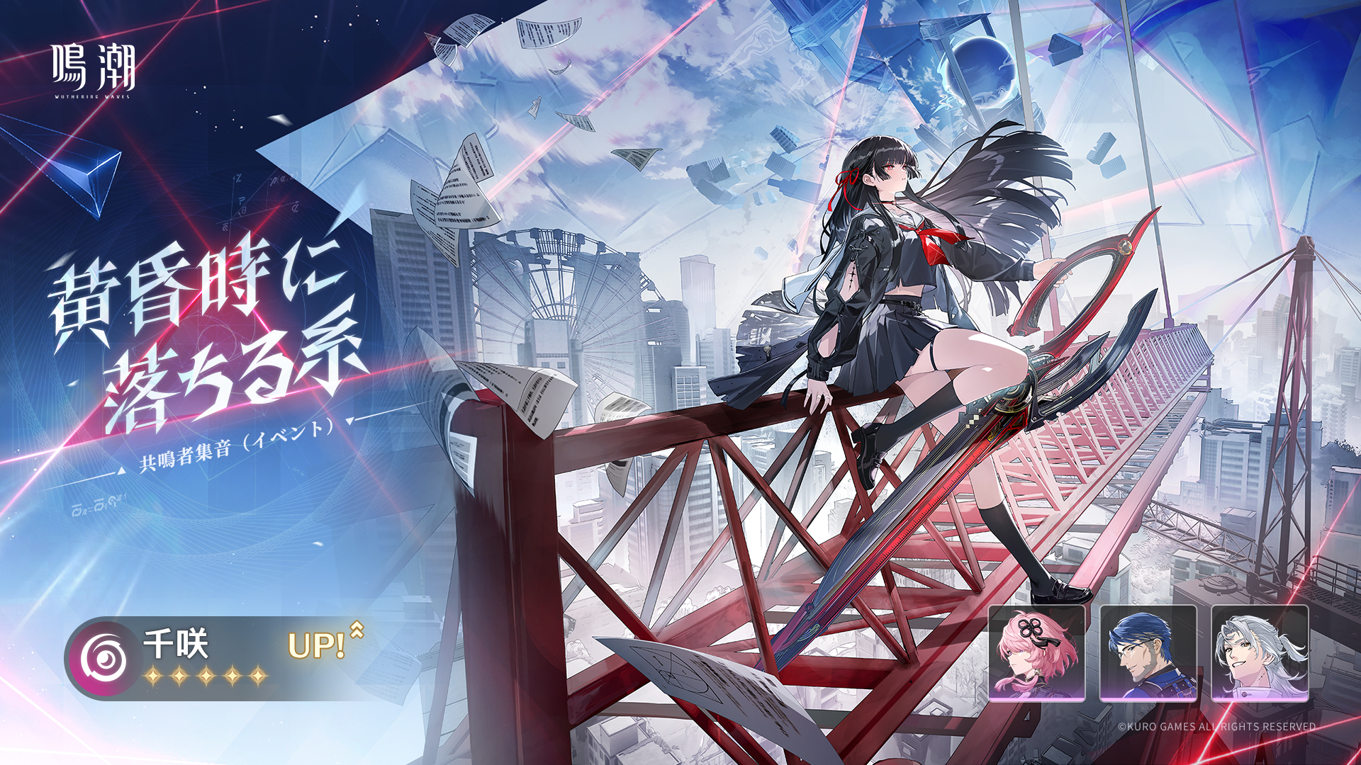 - ピックアップ共鳴者「千咲」は、共鳴者集音(イベント)「黄昏時に落ちる糸」のイベントでのみ獲得可能です。イベント終了後の獲得方法につきましては、現在追加する予定はありません。
