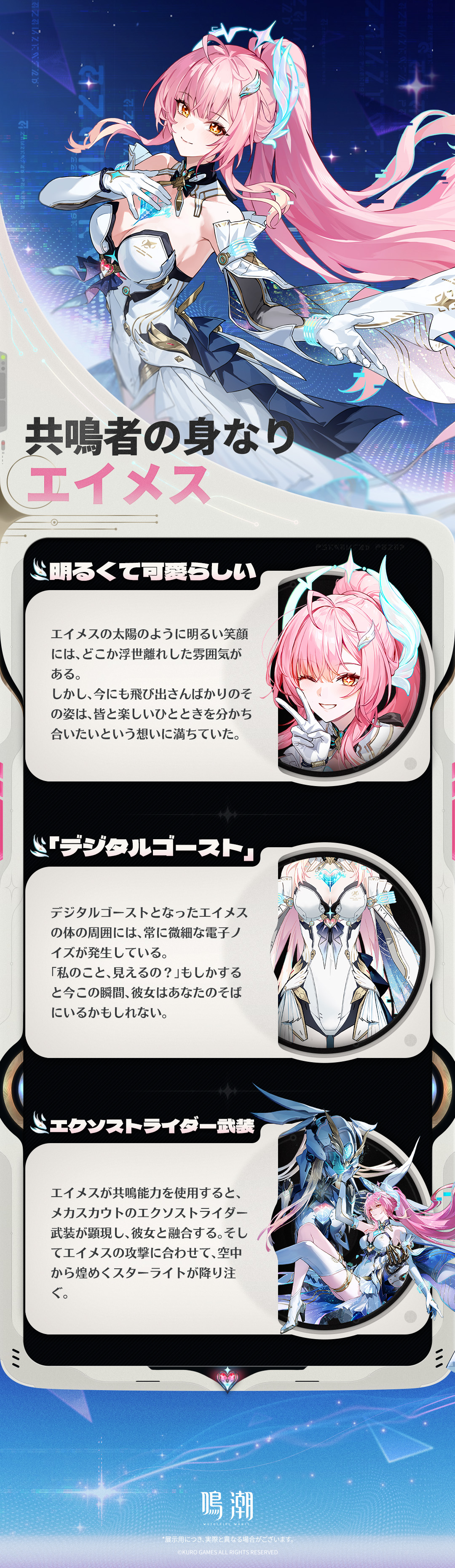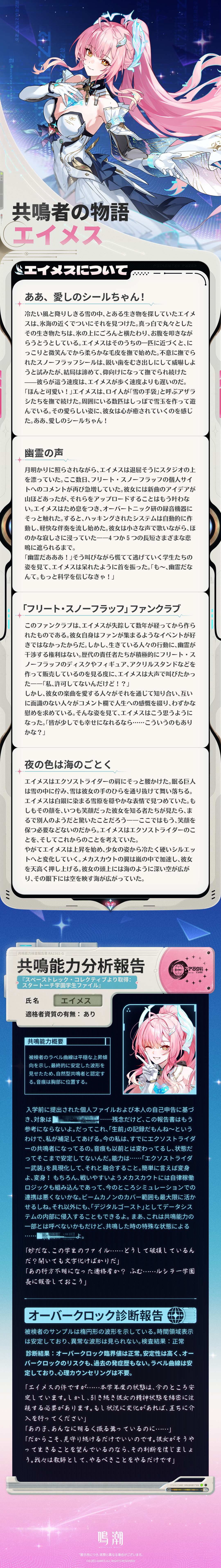 「エイメス。ラベル学部所属、エクソストライダー適格者! ……ま、それは生前の話。今の私は、デジタルゴーストよ~」