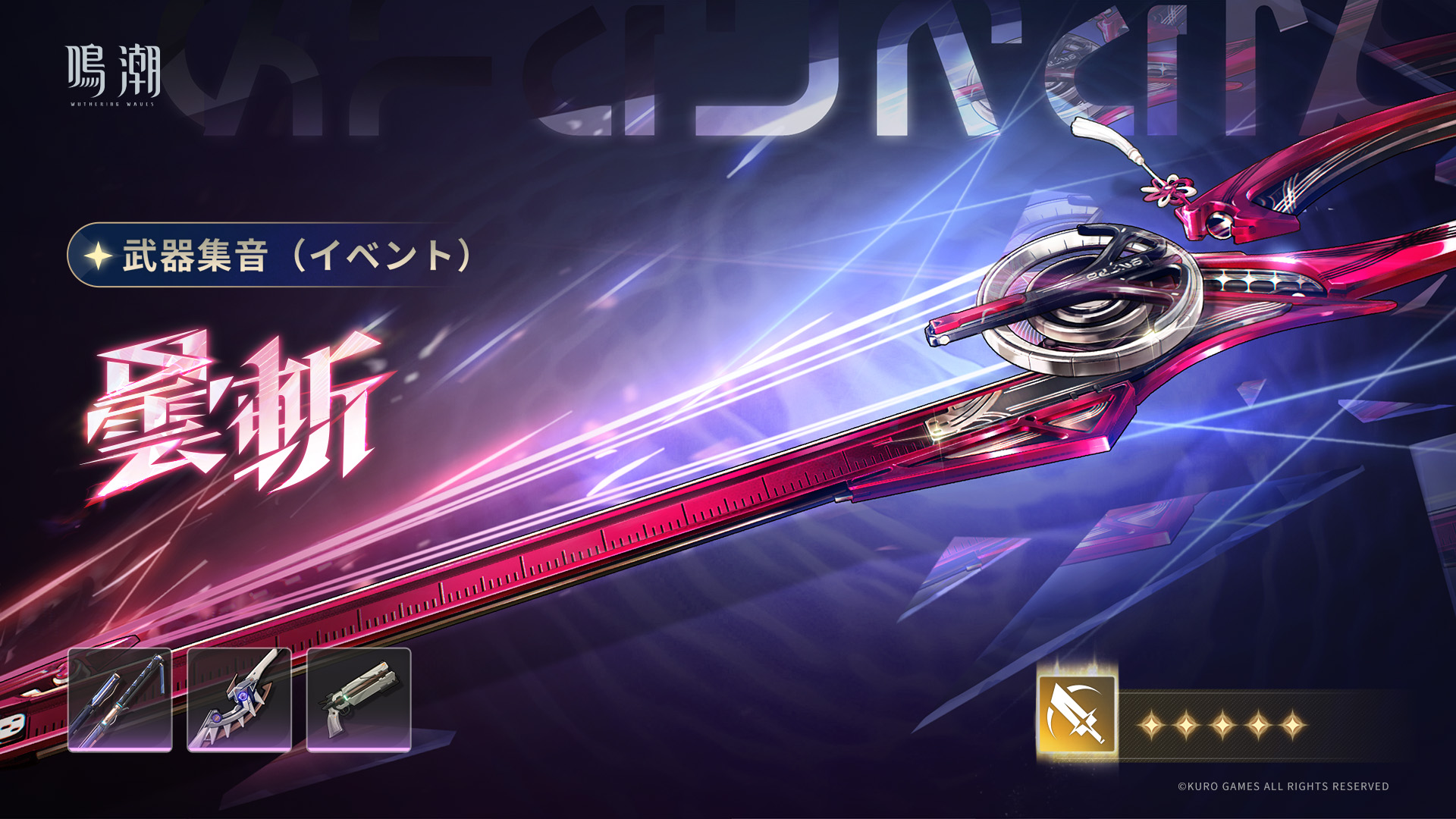 - ピックアップ武器「曇斬」は、「武器集音(イベント)」のイベントでのみ獲得可能です。イベント終了後の獲得方法につきましては、現在追加する予定はありません。