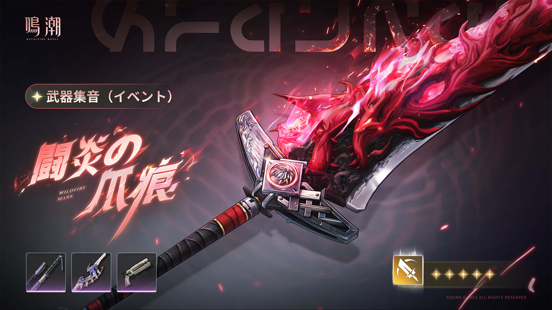 - ピックアップ武器「闘炎の爪痕」は、「武器集音(イベント)」のイベントでのみ獲得可能です。イベント終了後の獲得方法につきましては、現在追加する予定はありません。