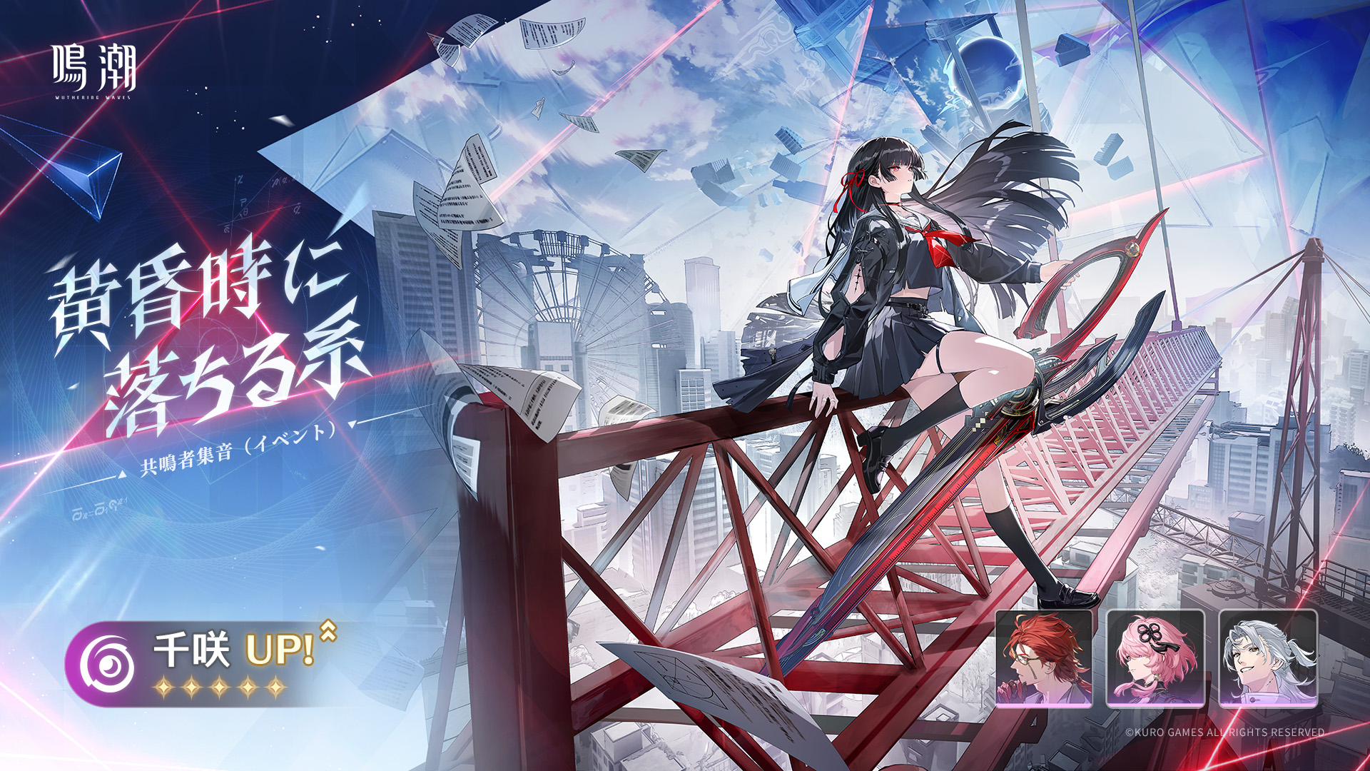 - ピックアップ共鳴者「千咲」は、共鳴者集音(イベント)「黄昏時に落ちる糸」のイベントでのみ獲得可能です。イベント終了後の獲得方法につきましては、現在追加する予定はありません。