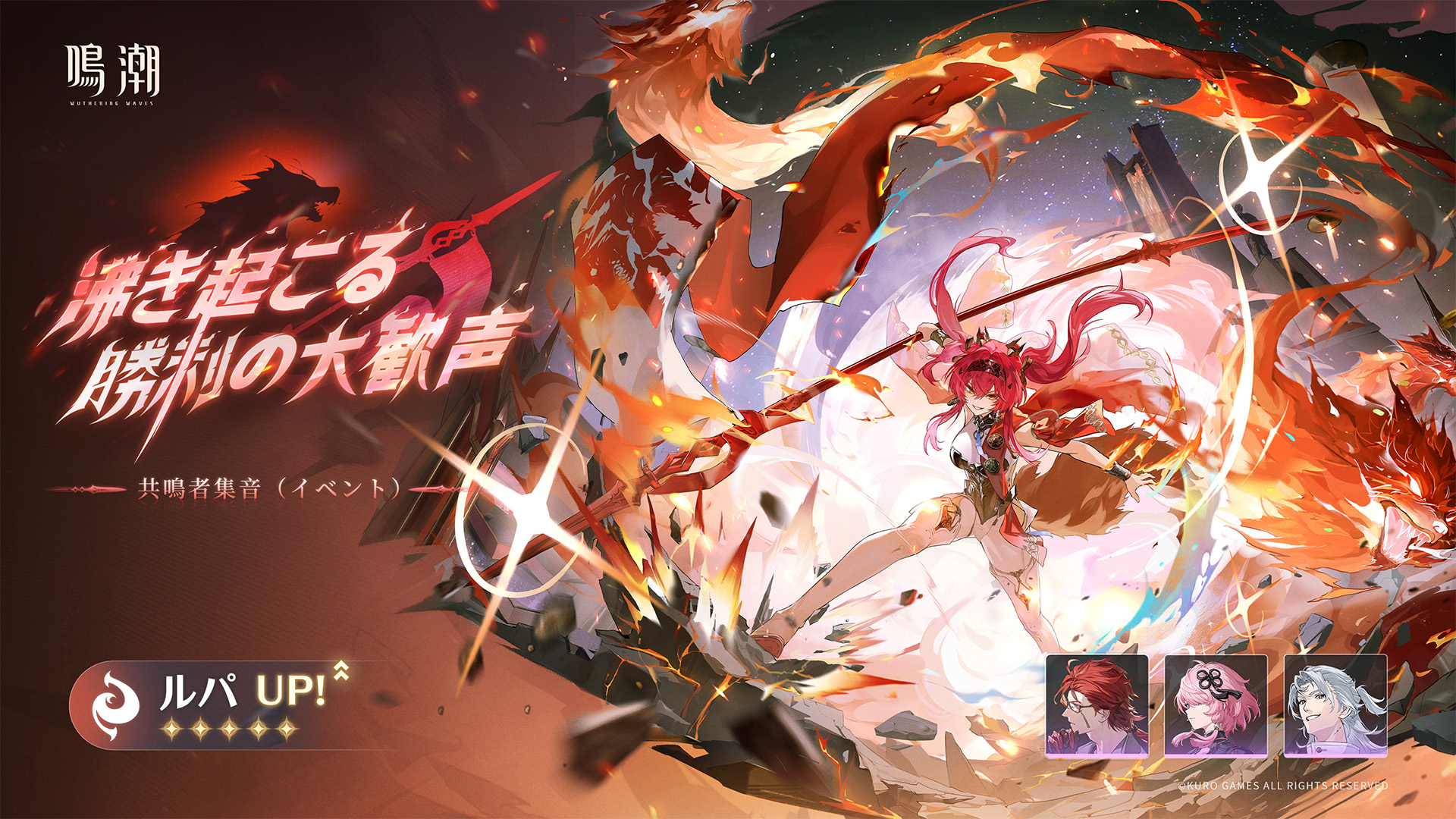 - ピックアップ共鳴者「ルパ」は、共鳴者集音(イベント)「沸き起こる勝利の大歓声」のイベントでのみ獲得可能です。イベント終了後の獲得方法につきましては、現在追加する予定はありません。