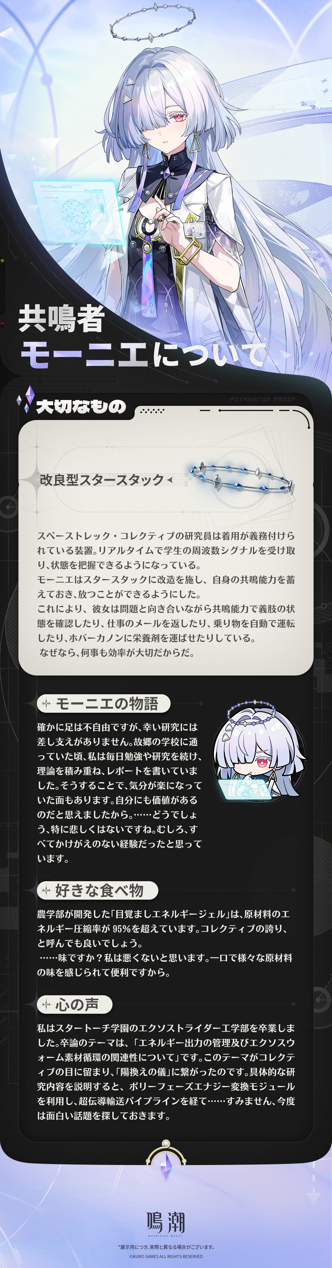 「スペーストレック研究院でエンジニアをしながら、スタートーチ学園の教授を務めているモーニエです。何か困った際は、いつでも相談に乗りましょう。」