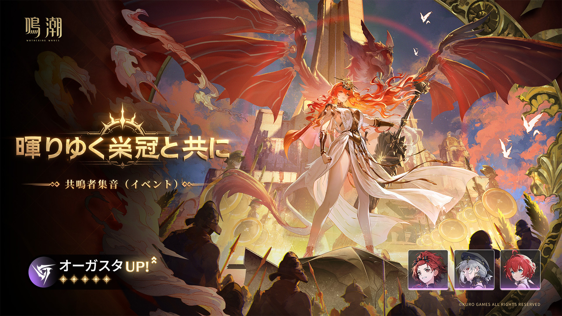 - ピックアップ共鳴者「オーガスタ」は、共鳴者集音(イベント)「暉りゆく栄冠と共に」のイベントでのみ獲得可能です。イベント終了後の獲得方法につきましては、現在追加する予定はありません。